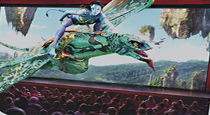 4D電影是立體電影和特技影院結合。立體的視覺的同時加上閃電、煙霧、雪花、氣味等自然現象的特效,配合觀眾的座椅還能產生不同動作模擬。給觀眾帶來全新的娛樂效果,猶如身臨其境,緊張刺激。