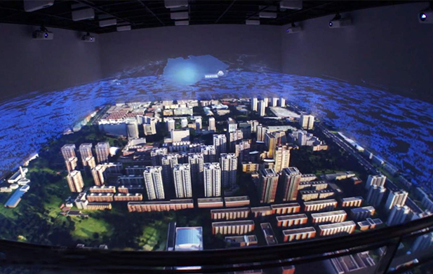 三折幕投影系統是由三個投影屏幕組合而成的具有環繞感的大顯示表面。與普通投影系統相比,其顯示效果更具沖擊力和沉浸感。它使人們充分認識到投射的魅力。三維視覺技術和投影顯示技術相結合創造的夢幻般的動態體驗適用于各種展廳。