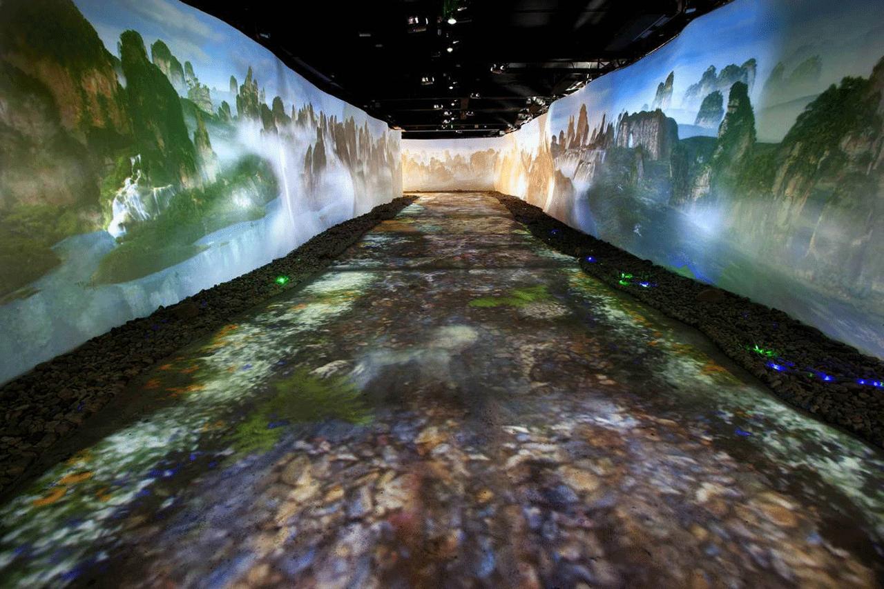 各類展館展廳都需要數字化來吸引受眾,互動投影技術作為一種虛擬現實技術和動感捕捉技術,作為展廳設計者這一類技術倍受青睞。其中,L幕投影采用地幕+直幕聯動方式展示,有效延伸了視覺空間,帶來超強體驗感。