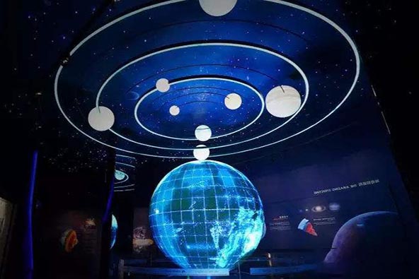 球幕投影是一種創(chuàng)意投影表現(xiàn)方式,這是一個非常魔幻的球體,利用在曲面上實現(xiàn)大尺寸圖像內(nèi)容的無縫拼接技術(shù),實現(xiàn)特殊曲面甚至球面的全景影像,給用戶先進的科技體驗,這種投射形式技術(shù)難,要求很高,屬于較為高端的投影技術(shù)。