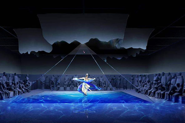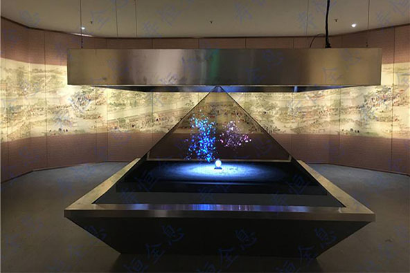 360度幻影成像系統也稱為虛擬成像系統,將三維畫面懸浮在實景的半空中成像,營造了亦幻亦真的氛圍,效果奇特,具有強烈的縱深感,真假難辯。
